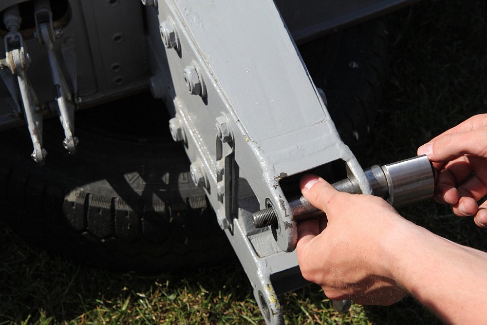 Hlavní podvozkové nezatažitelné kolo o rozměru 5.00 x 5 je odpruženo gumovými bloky. Kolo je vybaveno bubnovou brzdou spřaženou s aerodynamickými brzdami. Před kolem je umístěna kluzná lyže. Prostor mezi lyží a trupem je většinou potažen tkaninou. Pod kýlovou plochou je klasická ocelová ostruha, která je rovněž odpružena gumovým blokem. Přistávací zařízení doplňují pod konci křídel malá ochranná kolečka. Od roku 1985 je možná přestavba ASK-13, kdy je místo lyže montováno příďové kolo. Ostruha je nahrazována rovněž kolečkem.