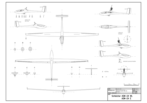 | OK-0024 | ASW-24 E | 24810 | Vyroben v prosinci 1989, ex D-KEMY, SE-UPB, D-KIIB. Zápis do českého rejstříku 25.6.2010, písmena CR na SOP. Vybaven radiostanicí Dittel FSG71M, elektronickým variometrem Zander ZS1. |